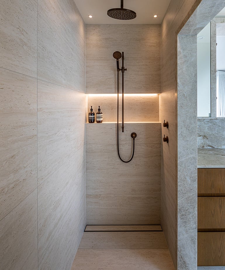 Every detail was resolved with intention, balancing materiality, tone, and function to deliver an ensuite that feels calm, considered, and effortlessly luxurious.
